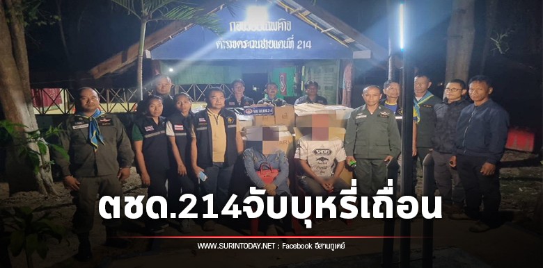เมื่อวันที่ 10 พ.ค. 2568 พ.ต.ท.ยศพล โคตา ผบ.ร้อย ฉก.ตชด.214 สั่งการให้ ร.ต.อ.ชนทัต งามพรหม รอง ผบ.ร้อย ฉก.ตชด.214 พร้อมกำลังพล ร้อย ฉก.ตชด.214 รวม 8 นาย , ร.ต.ต.วิษณุ สุริโย หน.ชุด ชปส.ร้อย ตชด.214 พร้อมกำลังพลรวม 8 นาย ร่วมกับ พ.ต.ต.พงษ์พิทักษ์ ระถาวนิชย์ สว.สส.สภ.บัวเชด พร้อมกำลังพลรวม 6 นาย,ร.ต.ต.สมชาย ช่างการ รอง สว.(ป.)ส.ทล.3 กก.6 บก.ทล. , นาย สุชาติ การะเกษ เจ้าพนักงาน สรรพสามิต ชำนาญงาน พร้อมกำลังพลรวม 5 นาย จับกุมและตรวจยึดบุหรี่นำเข้าผิดกฎหมาย บริเวณบ้านตระเวงเก่า ต.จรัส อ.บัวเชด จ.สุรินทร์ ได้ผู้ต้องหา 2 คน 1. นาย บุญร่วม หรือนาย กระแสโสม อายุ 47 ปี ที่อยู่ 12 ซ.รังสรร ถ.แก้วกินรี ต.ศรีบุญเรือง อ.เมืองมุกดาหาร จ.มุกดาหาร 2. นางลักขณา เจียวรัมย์หรือนา อายุ 59 ปี ที่อยู่ 26 เทศบาลบำรุง ต.ในเมือง อ.เมืองสุรินทร์ จ.สุรินทร์