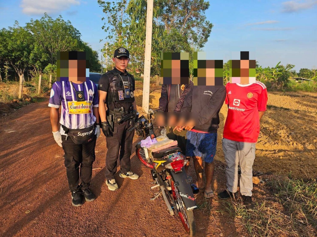 กระทั่งเวลาประมาณ 16.50 น. ขณะเจ้าหน้าที่เดินทางไปยังกระท่อมนาตามที่สายลับแจ้งเบาะแส พบผู้ต้องหาทั้งสองคนมีท่าทางพิรุธ ขับขี่รถจักรยานยนต์คันดังกล่าวมา เจ้าหน้าที่จึงแสดงตัวเข้าจับกุม แต่ผู้ต้องหาพยายามหลบหนีเข้าไปในทุ่งนา แต่สุดท้ายก็ไม่รอดถูกเจ้าหน้าที่ตามรวบตัวไว้ได้ในที่สุด