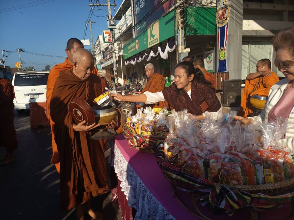 นายกเทศมนตรีเทศบาลตำบลท่าตูม นำพี่น้องประชาชนในเขตเทศบาลทำบุญตักบาตรช่วงวันขึ้นปีใหม่ เพื่อความเป็นสิริมงคล
