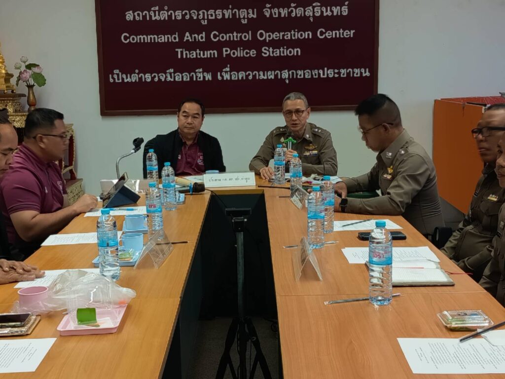 เวลา 14.00 น. วันที่ 13 มกราคม 2569 ที่ห้องประชุม ศปก. สภ.ท่าตูม อ.ท่าตูม จ.สุรินทร์ คณะกรรมการ กต.ตร.สภ.ท่าตูม และเจ้าหน้าที่ตำรวจ สภ.ท่าตูมได้ทำการประชุมร่วมกัน โดยมี นาย เต็ง มาดาจันทร์ ประธาน กต.ตร.สภ.ท่าตูม