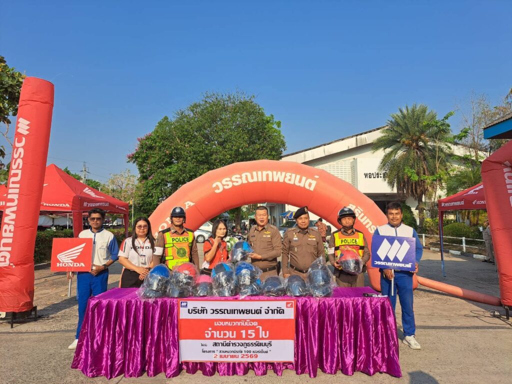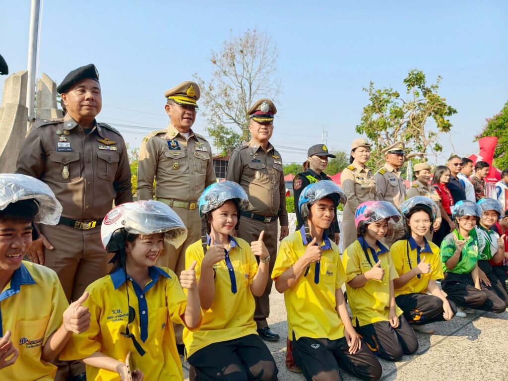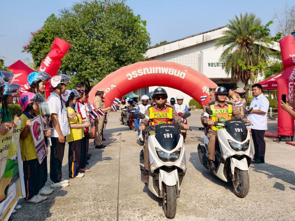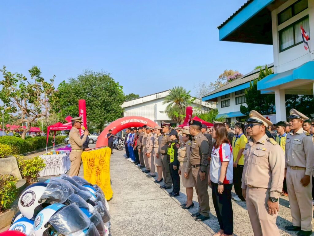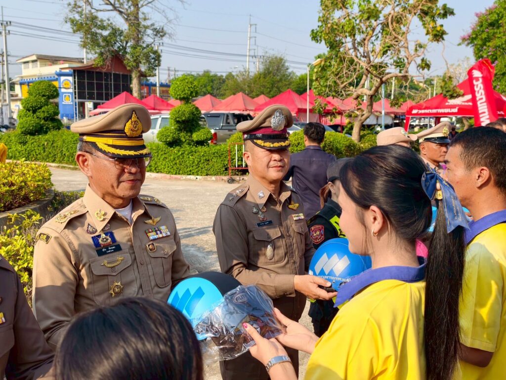 จากนั้นได้มีการปล่อยแถวและตั้งจุดตรวจเพื่อความปลอดภัย โดยได้มอบหมวกกันน็อคให้กับประชาชนที่ไม่มีหมวกกันน็อคเอาไว้ใช้ด้วย ซึ่งได้รับการสนับสนุนหมวกกันน็อคจากบริษัทวรรณเทพยนต์จำกัด จำนวน 15 ใบ พร้อมทั้งได้ชี้แจงข้อกฎหมายความปลอดภัยให้เข้าใจ เพื่อจะได้ปฎิบัติตามกฎหมายให้ถูกต้องต่อไป.