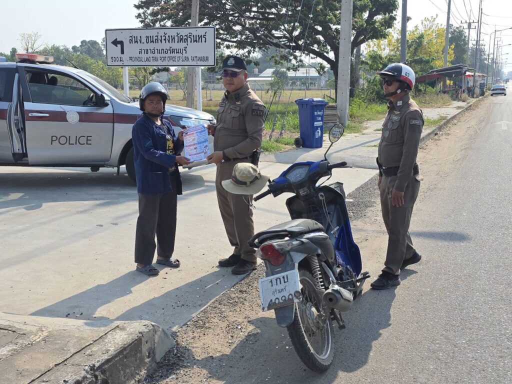 สภ.รัตนบุรี จัดกิจกรรมรณรงค์ป้องกันและลดอุบัติเหตุทางถนนช่วงเทศกาลสงกรานต์ ประจำปี 2569 พร้อมทั้งแจกหมวกกันน็อคให้กับ ปชช.