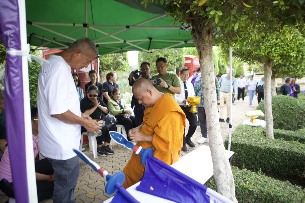 โดยนายกัมพล ตันสัจจา ประธานสวนนงนุชพัทยา เป็นประธานในพิธี พร้อมคณะผู้บริหารร่วมงานอย่างพร้อมเพรียง และได้นิมนต์ พระครูเกษมกิจโสภณ พร้อมพระสงฆ์รวม 9 รูป ประกอบพิธีเจิมแป้ง ปิดทอง และประพรมน้ำพระพุทธมนต์แก่ธงมนตราทั้ง 9 ผืน ท่ามกลางความสนใจของนักท่องเที่ยวทั้งชาวไทยและต่างชาติ